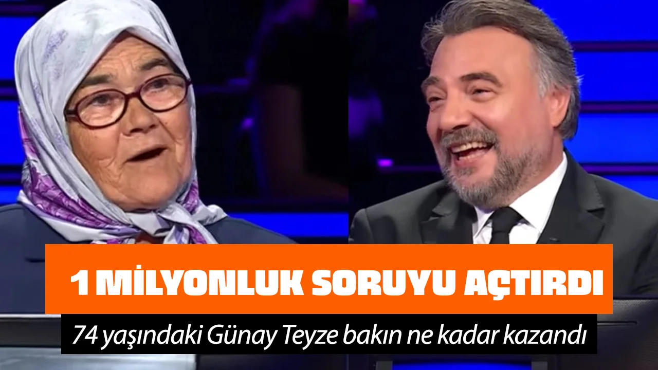 "Kim Milyoner Olmak İster?" yarışmasının son bölümüne 74 yaşındaki Günay Karataş damgasını vurdu. Muğla'da yaşayan ve sosyal medyada "Günay Teyze" olarak tanınan Karataş, büyük bir başarıya imza atarak 1 milyon TL'lik soruyu açtırdı.