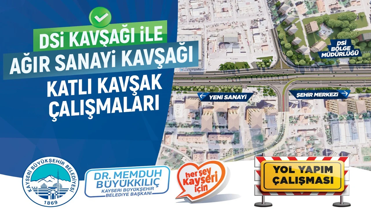 DSİ-Ağır Sanayi Katlı Kavşak çalışmaları süresince, Ağır Sanayi Kavşağı’nın doğu ve batı yönlerine ulaşım, servis yolları üzerinden sağlanacak. Büyükşehir Belediyesi, sürücülerin alternatif güzergâhları kullanmaları ve trafik işaretlerine uymaları konusunda uyarılarda bulundu.