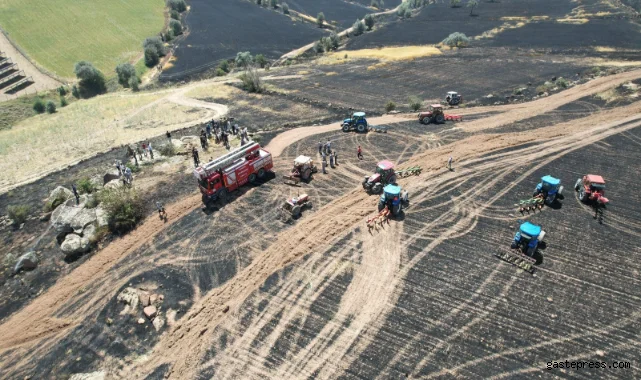 Edinilen bilgiye göre, ilçeye bağlı Ekinli Mahallesi’nde ekili olan yaklaşık 30 dönümlük buğday tarlasında henüz bilinmeyen bir sebepten dolayı yangın çıktı. Haber verilmesi üzerine olay yerine jandarma, itfaiye ve sağlık ekipleri sevk edildi. Çıkan yangın olay yerine giden 2 itfaiye aracı, 30 adet traktör, 2 kepçe, 1 greyder ve vatandaşların çalışmaları neticesinde söndürülerek kontrol altına alındı.