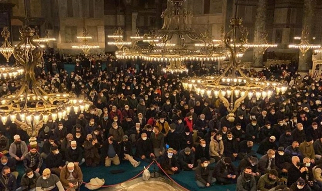Cami avlusu ve kapısında uzun kuyruklar oluştu. Ayasofya Camii içine sığmayan cemaat dışarda namazlarını eda etti.