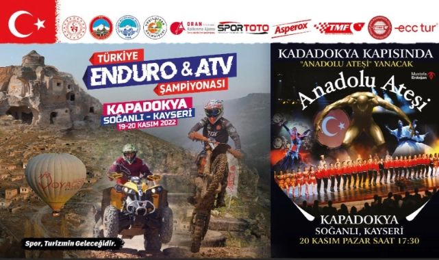 Başkan Büyükkılıç, şampiyonanın muhteşem bir gösteri ile taçlanacağını vurgulayarak; “Anadolu’nun binlerce yıllık kültür ve tarih mozaiğinin barışla harmanlanan ateşini tüm dünyaya tanıtan Anadolu Ateşi gösteri yapacak. Türkiye Enduro & Atv Şampiyonası çerçevesinde dünyayı kasıp kavuran “Anadolu Ateşi” dans gösterisi 20 Kasım Pazar Saat 17.30’da Kayseri’mizin Kapadokya’sı Soğanlı Vadisi’nde siz değerli hemşehrilerimizle bir araya geliyor” diye konuştu.