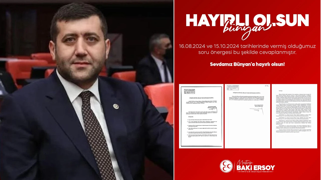 “Hayırlı Olsun Bünyan; 16.08.2024 - 15.10.2024 tarihlerinde vermiş olduğumuz önergelerimiz neticesinde ilgili Bakanlık tarafından, Bünyan ilçemizdeki dere ıslah çalışmaları için ödenek çıkartılmıştır. Sevdamız Bünyan’a hayırlı olsun.”