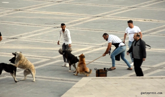 Başıboş köpeklerin kavgasını vatandaşlar ayırdı!