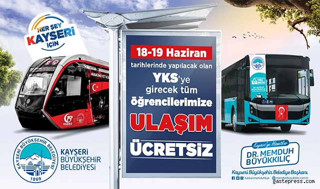 YKS’ye girecek öğrenciler 18-19 Haziran tarihlerinde sınav kağıtlarını göstererek toplu ulaşımdan ücretsiz yararlanabilecekler.