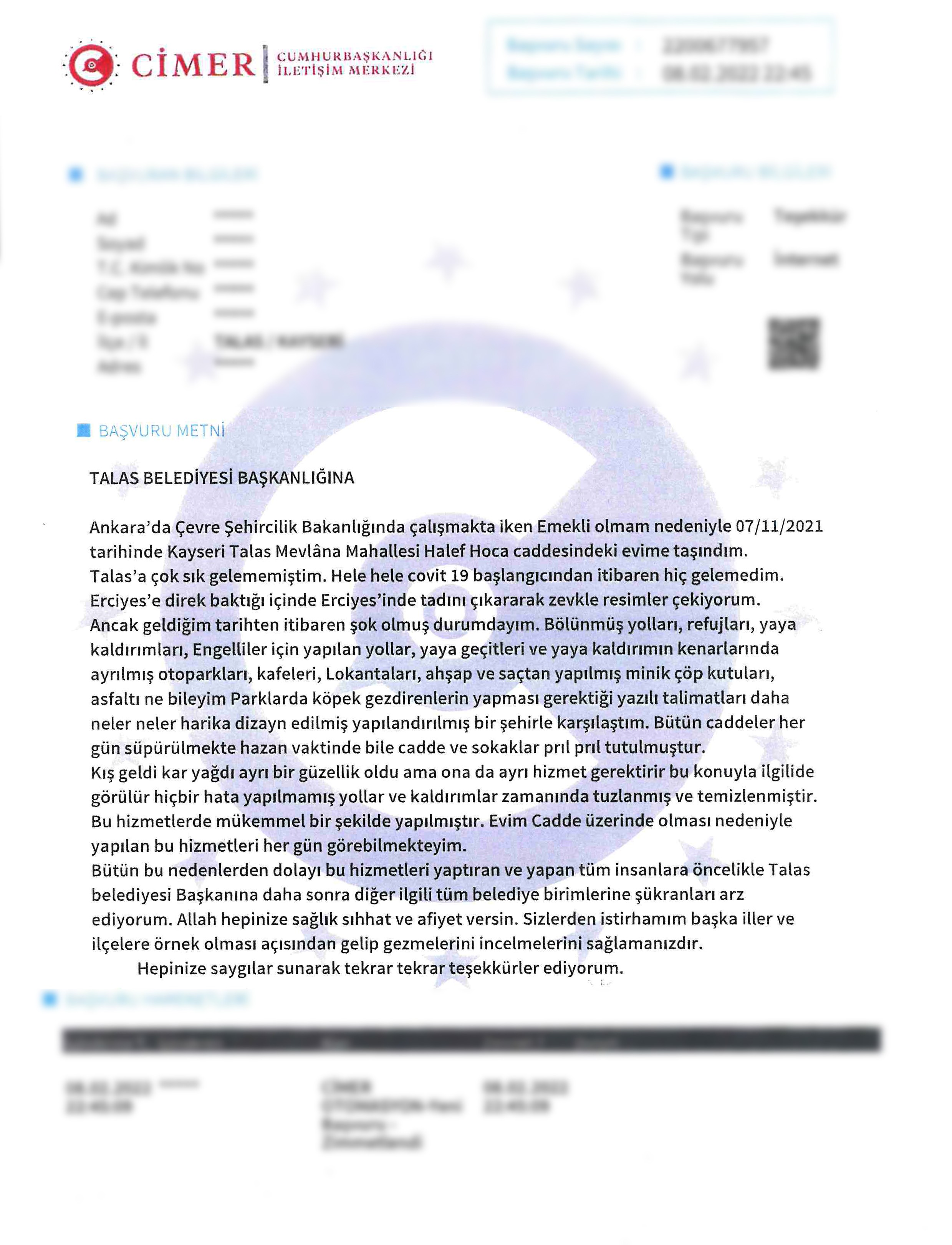 CİMER’e yaptığı başvuruda ilçedeki başarılı belediyecilik çalışmalarından övgüyle bahseden Mecid Can ise, “Şöyle bir şey var; kötüyü yerme insanların hakkıdır, doğrudur ama iyiyi de takdir etmek gerekir. Gerçekten de ben memnunum. Söylediklerimin eksiği var fazlası yok. Burayı da çok nezih gördüm. Düzenli gördüm. Beni davet etmenizden onur duydum” ifadelerini kullandı.