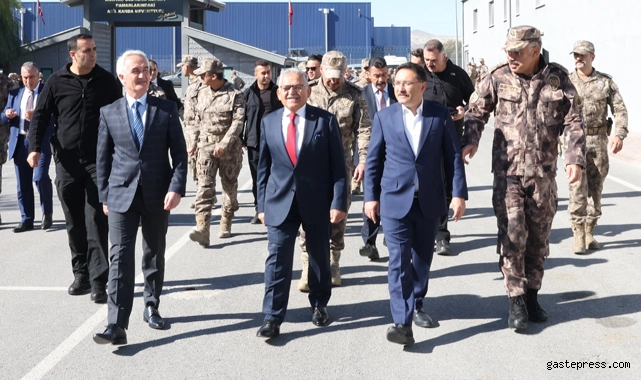 Vali Gökmen Çiçek ile birlikte Özel Harekât Şube Müdürlüğü’nü ziyaret eden Büyükşehir Belediye Başkanı Dr. Memduh Büyükkılıç, Suriye’deki operasyonlara katılacak olan özel harekât polislerini uğurladı. Özel Harekât Şube Müdürlüğü'nde gerçekleşen törene, Vali Gökmen Çiçek, Büyükşehir Belediye Başkanı Dr. Memduh Büyükkılıç ve İl Emniyet Müdürü Kamil Karabörk katıldı. Burada Vali Çiçek, özel harekât polislerini selamlayıp, “Değerli arkadaşlar, sırf sizi gitmeden görmek için geldim. Defalarca bu memleket için mücadele ettiniz, en ön saflarda yer aldınız. Özel harekât deyince insanın tüyleri diken diken oluyor. Umarım ayağınıza taş değmez. Kayseri’den size dua edeceğiz” diye konuştu.