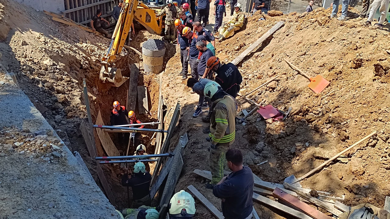 Reşadiye Mahallesi Esençile Sokak'taki inşaat şantiyesinde kanalizasyon çalışması sırasında göçük meydana geldi.
