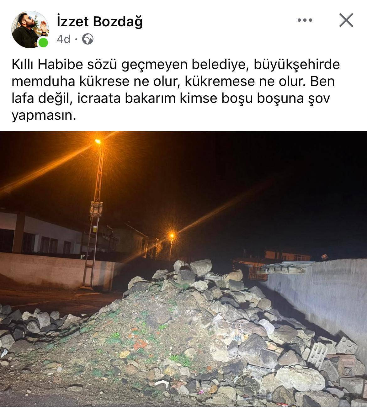 Bozdağ’ın paylaşımında yer aldığı iddia edilen “Kıllı Habibe sözü geçmeyen belediye, büyükşehirde Memduh’a kükrese ne olur, kükremese ne olur. Ben lafa değil, icraata bakarım kimse boşu boşuna şov yapmasın…” ifadeleri sosyal medyada geniş yankı uyandırdı.