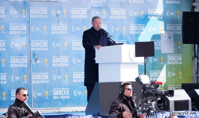 Erzurum'a yirmi bin kişi kapasiteli modern bir stat kazandırmak için hazırlıklara başladıklarını kaydeden Cumhurbaşkanı Erdoğan, “Palandöken Kayak Merkezimizle Konaklı Kayak Merkezimizi birleştirecek bir projeyle Erzurum'un Kız Sporları Merkezi hüviyetini güçlendireceğiz. Erzurumlu ihtiyaç sahibi vatandaşlarımıza on buçuk milyar lira tutarında kaynak aktardık. Sağlıkta, toplamda iki bin otuz iki yataklı, yirmi yedi hastane dahil, yüz yedi adet sağlık tesisini şehrimize kazandırdık. Bunların arasında yedi yüz yataklı Erzurum Şehir Hastanesi ve dört yüz Erzurum Bölge Eğitim ve Araştırma Hastanesi de bulunuyor. Savaşta hançeri vurur Erzurum. 31 Mart günü gurur Erzurum. TOKİ vasıtasıyla on dört bin dokuz yüz on dokuz konut uygulamasını hayata geçirdik. Bunlardan On bin on yedi konutu tamamlayıp hak sahiplerine teslim ettik. Kalanların yapımına devam ediyoruz. Kentsel dönüşümde beş bin dört yüz otuz beş riskli bağımsız bölümün dönüşümünü gerçekleştirdik. Aziziye ilçemizdeki kentsel dönüşüm Projesinde yaşanan gecikmeleri de en kısa sürede çözüme kavuşturacağız. Ülkemizin önemli deprem kuşaklarından birinin üzerinde yer alan Erzurum'u depreme dayanıklı bir şehir haline getirmekte kararlıyız Bunun için önümüzdeki dönemde bakanlıklarımızı ve belediyelerimizi seferber edeceğiz. Daha önce hiç atık su arıtma tesisi bulunmayan şehrimizde bugün dört adet atık su, arıtma tesisiyle nüfusun yüzde altmış ikisine hizmet veriyoruz. Erzurum'daki on üç millet bahçesinin projemizden onunu tamamladık. Düşünün yapımına devam ediyoruz. Ulaştırmada kırk dokuz kilometreden devraldığımız Bölünmüş yol mesafesini altı yüz yirmi kilometreye çıkardık. Pirinkayalar, İspir, Özbağ bir iki, Özlüce Arkun bir iki ve Güllübağ tünellerini tamamlayıp hizmete aldık. Aksukapı Mevlana ve büyük geçit köprülü kavşaklarını bitirerek trafiğe açtık. Horasan Karakurt, Sarıkamış yolunu, Erzurum, Çat, Bingöl yoludur. İşbir, Rize yoludur Erzurum Pasinler, Horasan yolunu, Hınıs şehir geçişini olduğu çevre yolu ve bağlantı yollarını bölünmüş yol olarak inşa ettik. Halen yapımı süren çok sayıda tüneli, ve yolu bu yıldan başlayarak kademe kademe hizmete alacağız” dedi.