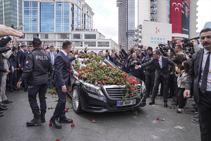 Bahçeli, MHP Genel Merkezi'nin karşısında bulunan Türkiye Alparslan Türkeş Siyaset Akademisi Vakfı'nın yeni hizmet binasına geçti. Bahçeli, kapıda coşkulu bir kalabalık tarafından tezahüratlar ve bozkurt işaretleriyle karşılandı.