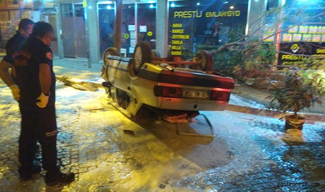 Kaza, akşam saatlerinde Halitpaşa Mahallesi Muhtar Ahmet Süzgün Caddesi’nde meydana geldi. Epilepsi hastası Emin Kılıç 10 ND 758 plakalı otomobille Erdek Çuğra mevkiinden ilçe merkezine seyir halindeyken Muhtar Ahmet Süzgün Caddesi’ne geldiğinde krize girerek direksiyon hakimiyetini kaybetti. Kontrolden çıkan ve aşırı hızlı olduğu öne sürülen otomobil önce park halinde bulunan bir araca ardından da kaldırımdaki ağaca çarparak takla attı. Kazayı görenler sürücünün yardımına koşup, durumu sağlık ekiplerine bildirdi. İhbar üzerine olay yerine çok sayıda polis ve sağlık ekibi sevk edildi. Sürücü Emin Kılıç ile 2 çocuğu çevredekilerin yardımıyla otomobilden çıkartıldı. Kazayı hafif sıyrıklarla atlatan yaralılar sağlık ekiplerinin olay yerindeki ilk müdahalesinin ardından Erdek Neyyire Sıtkı Devlet Hastanesi’ne kaldırıldı.