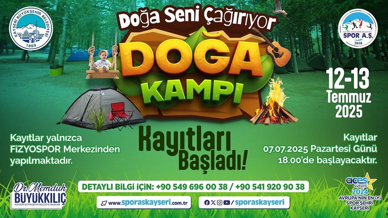 0-6 yaş için ücretsiz olan kamp, 7-13 yaş için 1000 TL, 14 yaş ve üzeri için 1200 TL olarak belirlenirken kayıtları yalnızca Fizyospor Merkezi’nden (Kayseri Büyükşehir Belediyesi yanı) alınan "Doğa Seni Çağırıyor" Doğa Kampı hakkında detaylı bilgiye ise 0549 696 00 38 ve 0541 920 90 38 numaralı telefonlar üzerinden erişilebilecek.