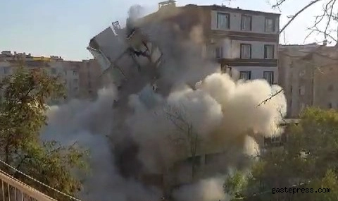Elazığ’da ağır hasarlı bina tek dokunuşta yerle bir oldu!