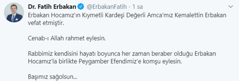 Diş hekimi olan 92 yaşındaki Kemalettin Erbakan, 1950’lerden itibaren İstanbul’da Milli Görüş hareketinde yer aldı. Kemalettin Erbakan’ın, Necmettin Erbakan’ın hatıralarını anlattığı, “Etraftakiler” adlı bir de kitabı bulunuyor.