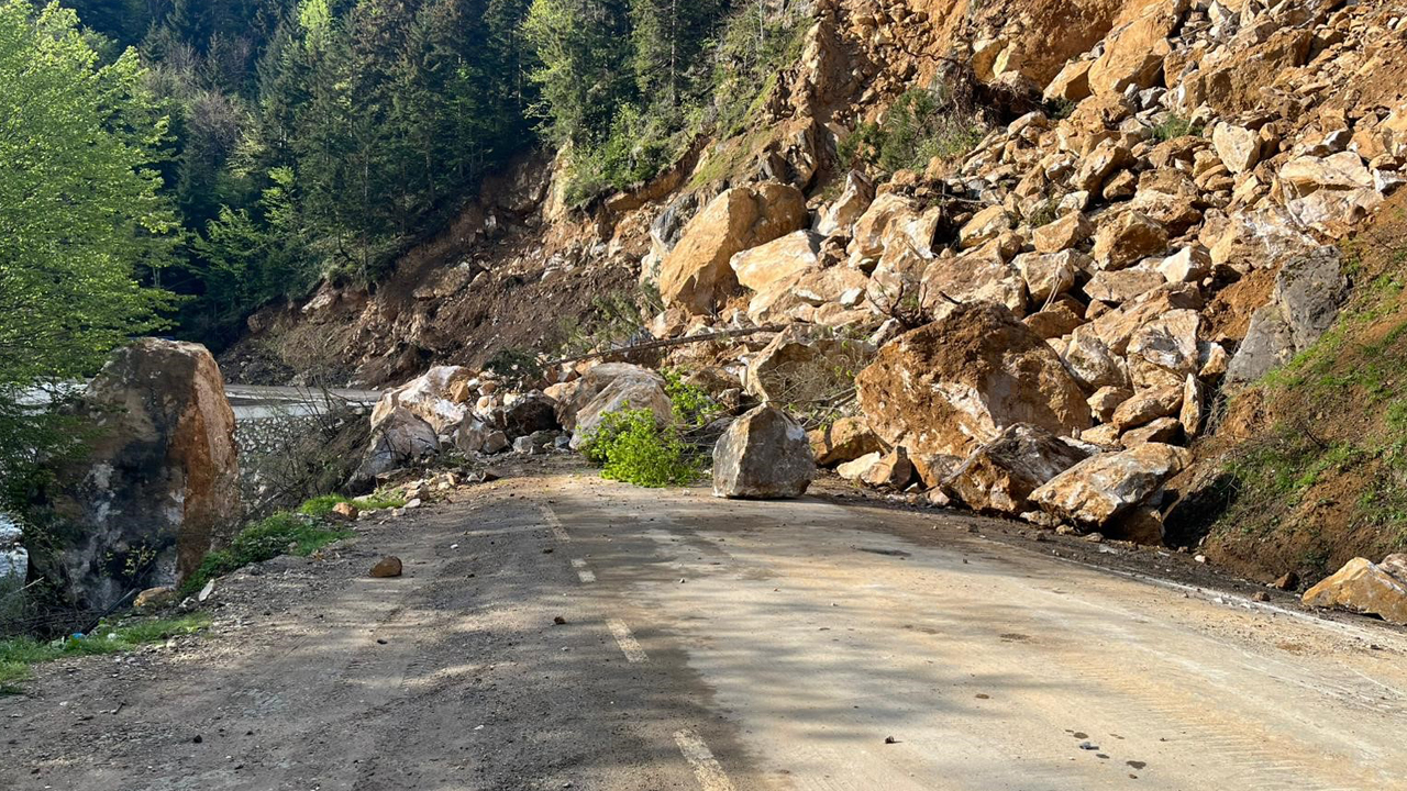 Heyelan nedeniyle kara yolu ulaşıma kapandı. Bölgeye sevk edilen ekipler, yolda çalışma başlattı.
