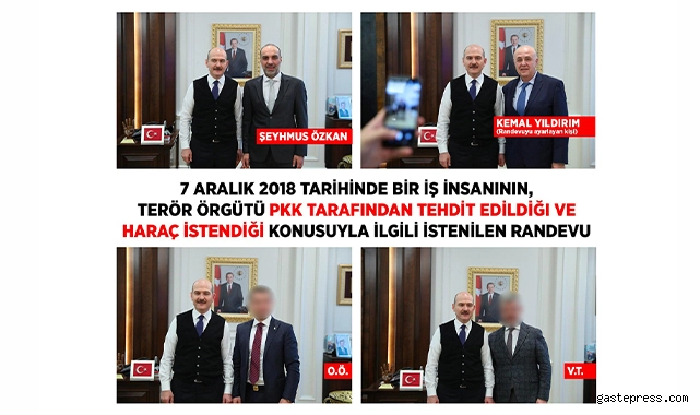 İçişleri Bakanlığı Bakan Müşaviri Burak Gültekin, sosyal paylaşım sitesi Twitter hesabından yaptığı paylaşımda, “7 Aralık 2018 tarihinde, Şeyhmus Özkan isimli şahsın, 'PKK Terör örgütü tarafından tehdidi ve haraç istendiğiyle ilgili Sayın Bakanımızın Doğru Yol Partisi İstanbul İl Başkanlığı döneminden ve Küçükçekmece'den tanıdığı Kemal Yıldırım'ın talebi üzerine randevu verilmiş; ilgili şahıs, yanında V.T. ve O.Ö. isimli iki iş insanıyla gelmiştir.