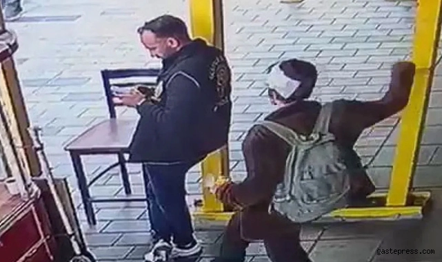 Öte yandan polis memurunun bıçaklı bir şüpheli tarafından saldırıya uğradığı o anlar kameraya yansıdı.