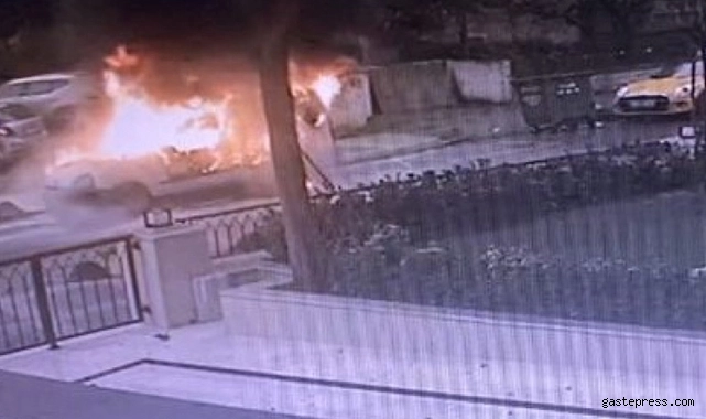 Yangın, itfaiye ekiplerinin müdahalesi sonucu kısa sürede söndürülürken, yanan otomobil kullanılamaz hale geldi. Otomobilin yanma anı ise güvenlik kamerasına yansıdı.
