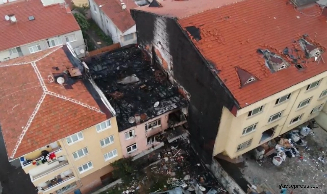 Günün ilk ışıklarıyla birlikte patlamanın yaşandığı bina havadan görüntülendi. Patlamanın yaşandığı binanın harabeye döndüğü, çevredeki binaların ise hasar aldığı görüldü.