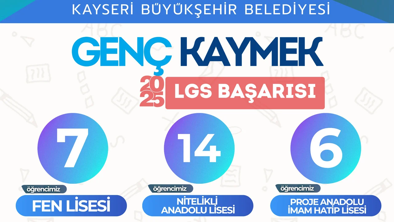 Öğrencilere sağladığı eğitim destekleri ile gönüllere dokunan Büyükşehir Belediyesi KAYMEK, sınavlara hazırlık süreçlerinde de ücretsiz kurs desteği verdiği öğrencilerin, hayallerindeki okullara yerleşmelerinde en güçlü destekçisi oldu. Büyükşehir’in Genç KAYMEK LGS hazırlık kursuna katılan öğrencilerden 308’i hayallerindeki liselere yerleşti. Bu çerçevede KAYMEK, ücretsiz LGS hazırlık kursu ile sınava hazırlanan öğrencilerinden 7’sini Fen Liselerine, 14’ünü Nitelikli Anadolu Liselerine, 6’sını Proje Anadolu İmam Hatip Liselerine, 23’ünü Anadolu İmam-Hatip Liselerine, 131’ini Anadolu Liselerine ve 127’sini de Sağlık-Meslek-Teknik Anadolu Liselerine yerleştirme başarısı gösterdi. 2024-2025 eğitim-öğretim yılında 10 farklı tesiste hizmet veren Genç KAYMEK Gençlik Merkezlerinde 4. sınıftan 11. sınıfa kadar akademik ders takviyeleri ve 8. sınıflara LGS hazırlık kurslarının yanı sıra İhtisas Gençlik Merkezi’nde 12. sınıf ve mezun gruplara Yükseköğretim Kurumları Sınavı’na (YKS) hazırlık kursu verildi. Genç KAYMEK Gençlik Merkezleri; akademik derslerin yanı sıra sosyal, kültürel, sanatsal ve sportif faaliyetlerle gençlerin zihinsel, sosyal ve fiziksel gelişimlerine katkı sağlarken, sunduğu imkânlarla teknolojik gelişmelere açık, bilimsel gelişmeleri takip eden üretken gençler yetiştirmeyi amaçlıyor.