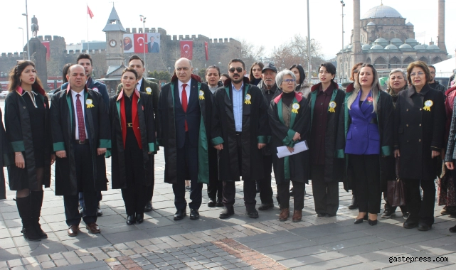 Kayseri Barosu tarafından 8 Mart Dünya Kadınlar Günü dolayısıyla Cumhuriyet Meydanı’nda bulunan Atatürk büstüne çelenk bıraktı. Saygı duruşunda bulunulması ve İstiklal Marşı’nın okunmasının ardından bir konuşma yapan Kayseri Barosu Kadın Hakları Komisyon Başkanı Av. Eylem Sarıoğlu, Tüm dünyada, kadınların eşitlik, adalet ve kadın hakları için verdikleri mücadelenin hatırlandığı; kadının erkekle yaşamın her alanında eşit konumlandırılması gerektiğinin vurgulandığı; cinsiyete dayalı ayrımcılık ve şiddetin son bulmasının ve kadının insan haklarının yaşama geçirilmesinin istendiği; kadının insan haklarını ihlal eden düzene karşı mücadeleye büyük bir kararlılıkla devam edileceğini haykırdığı gündür. 8 Mart, kadın dayanışmasının, örgütlü mücadelemizin sembolüdür. Medeni Kanun’da yer alan ve en temel haklarımız olan boşanma, velayet, nafaka hakkı başta olmak üzere, 6284 sayılı yasa ile elde ettiğimiz kazanımlarımızın tartışmaya açılmasını kabul etmiyoruz. 6284 sayılı yasanın tartışma konusu olması, yasadan kaynaklı taleplerin etkin uygulanmaması sonucunda her gün daha fazla kardeşimizi kaybetmeye tahammülümüz yok. Kadın meslektaşlarımız her zaman kadın mücadelesinin en önemli bileşenleri olarak en önde yer aldılar. Buna rağmen bugün bürolarımız ve adliye koridorları dahi bizim için güvenli olmaktan uzak. Taleplerimiz çok açık. Yaşam hakkımız başta olmak üzere, güvenli kentlerde, emeğimizin karşılığını aldığımız, eşit işe eşit ücret taleplerinin karşılandığı, kadın yoksulluğunun olmadığı bir dünya. Kadının yaşam hakkı başta olmak üzere haklarını korumakla yükümlü olanların bu konuda sessiz kalmalarını kabul etmiyoruz. Yaşam hakkımızı ihlal edenlerin her zaman karşısında olacağımızı ve haklarımızı her zaman savunacağımızı bir daha yüksek sesle tekrarlıyoruz” şeklinde konuştu.