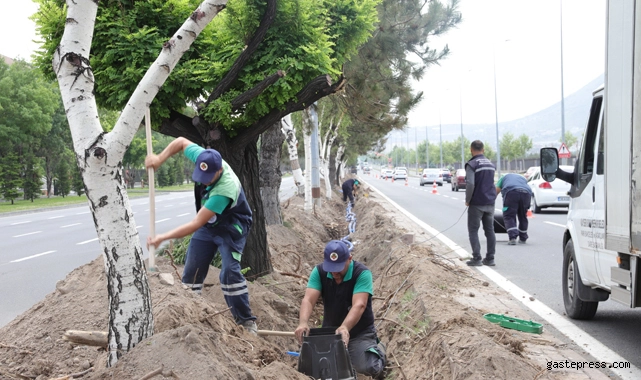 Kayseri Büyükşehir Belediyesi Park Bahçe ve Ağaçlandırma Daire Başkanlığı Yeşil Alanlar Proje ve Uygulama Şube Müdürlüğü tarafından gerçekleştirilen 2022 yılı sulama sistemleri çalışmaları kapsamında altyapıyı güçlendirirken, çim alanlarda yağmurlama (spring) ve ağaçlandırma sahalarında damla sulama sistemleri yapımlarına devam ediyor.