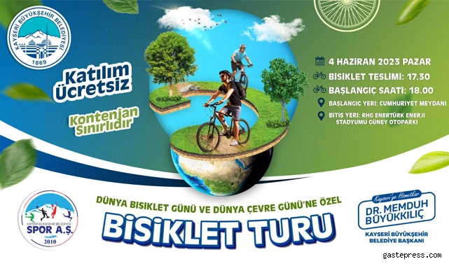 Kentin dört bir yanında yediden yetmişe Kayserililere hemen her alanda hizmet götüren Kayseri Büyükşehir Belediyesi, Dr. Memduh Büyükkılıç başkanlığında sağlıklı ve çevreci bir ulaşım aracı olan bisiklet kullanımını yaygınlaştırmak için etkinliklerini de sürdürüyor. Kayseri Büyükşehir Belediyesi bünyesinde faaliyet gösteren ve minikler başta olmak üzere tüm Kayserililere sporu sevdiren Spor A.Ş. 4 Haziran 2023 Pazar Günü, bisikletseverlere özel bir tur düzenleyecek. Büyükşehir Belediyesi’nin spor faaliyetlerinde öncü kuruluşu Spor A.Ş. tarafından Dünya Bisiklet Günü ve Dünya Çevre Günü temalı bisiklet turu, 4 Haziran’da gerçekleşecek.