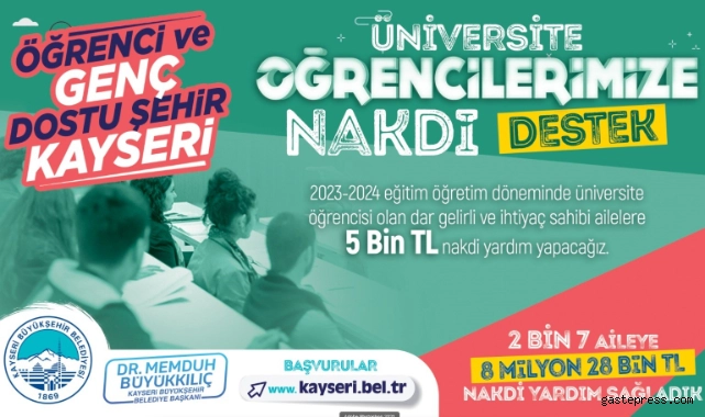 Kayseri Büyükşehir Belediyesi, kent sınırları içerisinde ikamet eden ihtiyaç sahibi ve dar gelirli ailelerin devlet üniversiteleri ve vakıf üniversitelerinde tam burslu okuyan öğrencilerine destek olmak için harekete geçti.