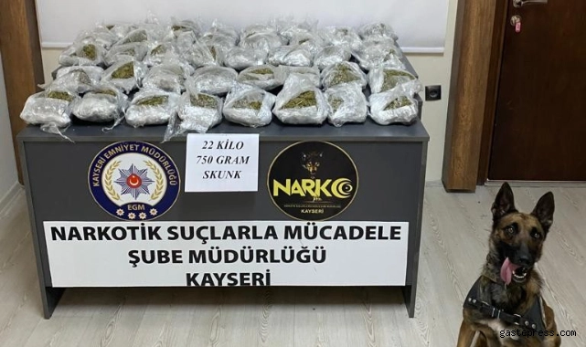 Kayseri İl Emniyet Müdürlüğü Narkotik Suçlarla Mücadele Şube Müdürlüğü ekiplerince şüphe üzerine durdurulan otomobilde 22 kilo 750 gram uyuşturucu ele geçirildi.