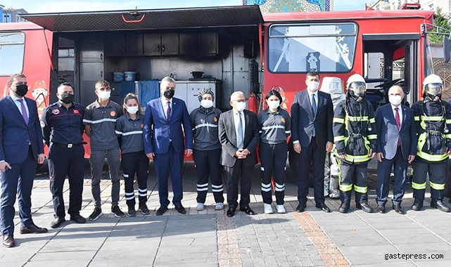 Stantları gezen protokol, Cumhuriyet Meydanı’nda sergilenen, deprem, sel gibi afet durumlarında görevli personelin olay yerinde geçirdiği gün süresince konaklamasını daha sağlıklı bir biçimde yapabilmeleri için tasarlanan afet aracını ilgiyle inceledi.
