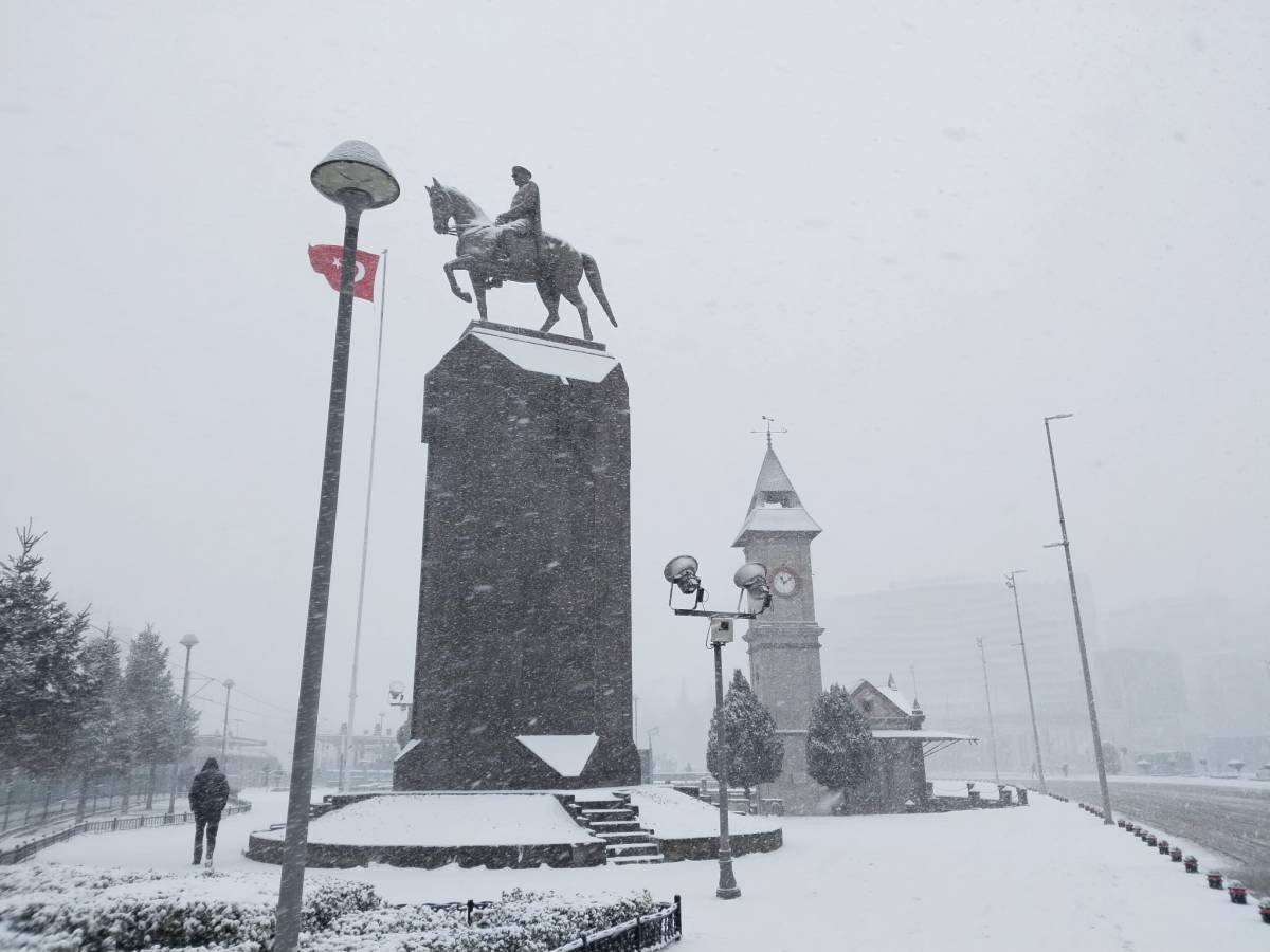 Özellikle kent merkezinde etkisini gösteren kar yağışı, Cumhuriyet Meydanı başta olmak üzere birçok noktada görsel güzellikler sundu. Yılın ilk günü olması nedeniyle meydan ve çevresinin sakin olduğu gözlemlenirken, vatandaşlar oluşan manzaraları cep telefonlarıyla kayda aldı.