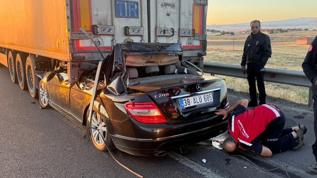 Edinilen bilgi göre; kaza, Kocasinan ilçesi Kuzey Çevre Yolu'nda meydana geldi. Trafikte ilerleyen sürücüsü öğrenilemeyen 38 ALU 685 plakalı otomobil, seyir halindeki 01 UC 969 plakalı tıra arkadan çarptı. Tırın altına giren otomobil hurdaya döndü. Çevredekilerin ihbarı üzerine bölgeye polis, itfaiye ve sağlık ekipleri sevk edildi. Yapılan kontrollerde otomobil sürücüsünün yaşamını yitirdiği belirlendi. Sürücünün cansız bedeni ekiplerce çıkarılırken, tırın altında sıkışan otomobil de çekici ile çıkarıldı. Kazayla ilgili inceleme başlatıldı.