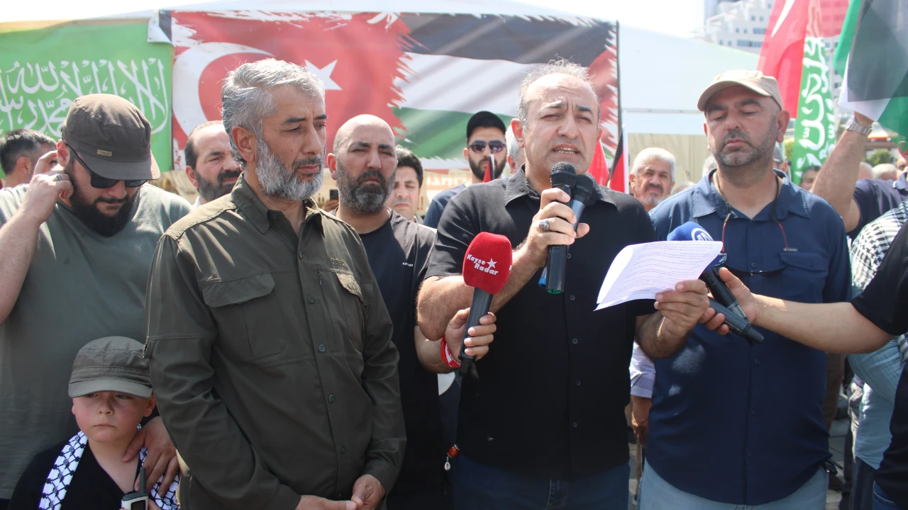 Cumhuriyet Meydanı'nda düzenlenen basın açıklamasında konuşan Erdal Ergenç; "Bizler; yürekleri yangın yerine dönüş, bir asırdan fazladır parçalanan, tutuşturulan, enkaz altında kalan, araçlarda mahsur kalıp küçücük vücuduna onlarca mermi isabet eden, şarapnel parçaları ile uzuvlarını kaybeden, canlı canlı ateşe verilen canların acısını yaşayan milyonlarca insanın iç sesi olarak Küresel Gazze Yürüyüşü'ne katılmak üzere Refah Sınır Kapısı'na gidiyoruz. Biliyoruz ki ümmetin her bir ferdinin aklı ve kalbi dayanılmayacak kadar acılar çekiyor ve kabullenemiyoruz bu zulmü, soykırımı, katliamı. insanlık onurunun bu kadar yerlerde süründüğü başka bir tarih var mıdır bilmiyorum. Milyarlarca insanın içine bir grup Siyonist katil çetesi girmiş, şımarık, fütursuz ve ahlaksızca insanlık onurunu yerle bir etmeye çalışıyorlar. Kendilerine tehdit gördükleri her unsuru, askeri olsun ya da olmasın imha etmekten asla çekinmiyorlar. İnsanlık adına bu ahlaksızca yürütülen ve dünya insanlarının gözünün içine baka baka işlenen suçların elbette hesabını verecekler. Gelinen noktada artık hükümetlerin, devletlerin, dünya devlerinin bu şımarık katliamcı çeteye söyleyecek sözleri kalmamıştır. Politik olarak söylenecek her söz, her kınama, her nota verilmiş olup bu soykırımcı çeteye güç yetirememektedirler. Küresel Gazze Yürüyüşü bu çaresizliğe, bu ezilmişliğe ve bu suskunluğa bir çığlık olmak üzere Refah Sınır Kapısı'na kadar yürümek için kararlı ve inançlıdır. Bizler de sizlerin evlatları ve temsilcileri olarak bu Küresel Gazze Yürüyüşü'ne katılarak sesinizi Gazze'de, hayatta kalmayı başaran insanlara umut olarak ulaştırmak üzere Mısır'a hareket ediyoruz. Barışçıl, aynı zamanda hiçbir maddi güce ve kaba kuvvete başvurmadan tamamen sivil bir inisiyatif ile bu yolculuğa çıkıyoruz" dedi.