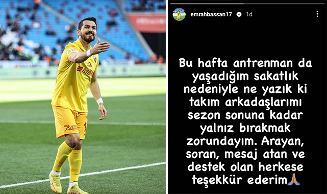 Spor Toto Süper Lig'de mücadele eden Yukatel Kayserispor’da Emrah Başsan'dan kötü haber geldi. Vavacars Fatih Karagümrük maçı öncesi antrenmanda sakatlanan başarılı oyuncu Emrah Başsan'ın, yapılan kontrollerin ardından sezonun kalan bölümünde forma giyemeyeceği öğrenildi.