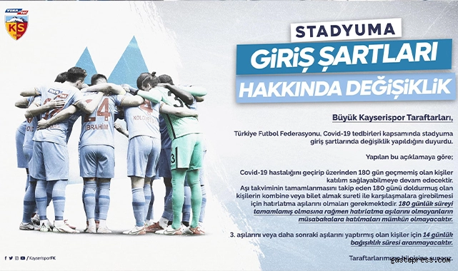 Yukatel Kayserispor Kulübü, statta maç izlemek isteyen taraftarlara aşı uyarısı yaptı.