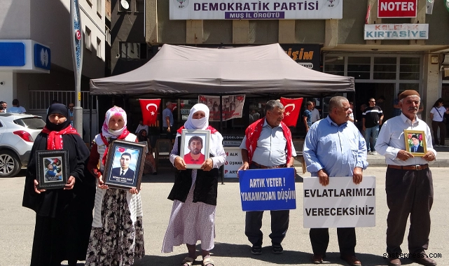 Muş'ta çocuklarının terör örgütü PKK tarafından kandırılarak dağa kaçırılmasından HDP'yi sorumlu tutan annelerin evlat nöbeti devam ediyor. HDP önünde evlatlarına kavuşacakları günü umutla bekleyen anneler, 67 haftadır eylemlerini sürdürüyor. Parti binası önüne gelerek HDP ve PKK'dan çocuklarını isteyen anneler, HDP ve PKK'yı lanetledi. Evlatlarına geri dönmeleri için çağrıda bulunan anneler, "Yavrumu verin bana", "Anneler direniyor", "Artık yeter, bırakın evlatlarımızı" ve "Artık yeter, yakamızdan düşün" yazılı dövizler açtı. Evlatlarına teslim olmaları çağrısında bulunan aileler, kararlı bekleyişlerini sürdüreceklerini ifade etti.