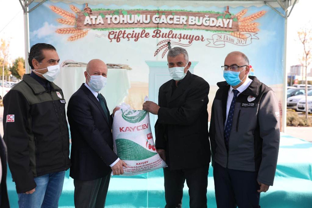 Çiftçilere, Anadolu’da ilk ıslah edilen ve 28 kromozomu ile genetiği bozulmadan günümüze kadar gelen gacer buğdayı dağıtıldı.