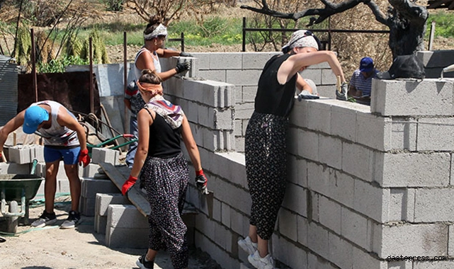 Erkek ve kadınlardan oluşan gönüllülerin daha önceden hiç inşaat işinde çalışmadığını, ellerine mala bile almadıklarını belirten Aydan "Gönüllü arkadaşlarımızın hepsi, farklı meslek gruplarından. Ben mimarım, içimizde iç mimar var, öğrenci var, endüstriyel tasarımcı var, satış danışmanı var, organizatör var. Değişik meslek gruplarından insanlar burada. Daha önce inşaatta çalışmadık, elimize mala almadık. Hiçbirimiz de duvar örmedik. Aslında duvar örme; sahaya indiğinizde bir iki günde çok rahat öğrendiğiniz bir şey. Yanımızda ustabaşılarımız var, onların nezaretinde çalışmalarımızı sürdürüyoruz" ifadelerini kullandı.
