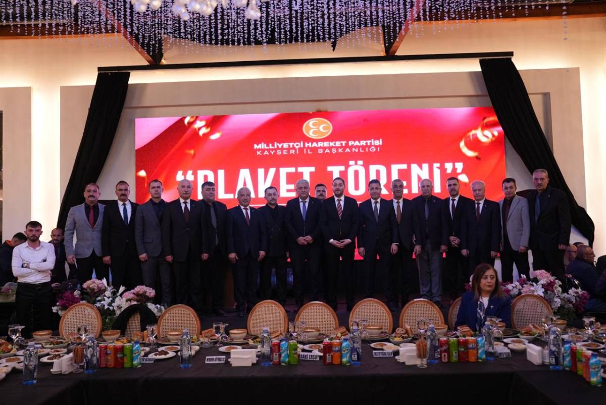 Kalın, kısa süre içerisinde önemli çalışmalar gerçekleştirdiklerini ifade ederek, “Biraz önce burada, 16 ilçemizden toplam 38 ülküdaşımıza ‘Hayırlı Günler Komşum’ ve ‘Derdimiz Derdinizdir’ sohbetleri kapsamında göstermiş oldukları üstün gayretlerden dolayı plaketlerini takdim ettik. Her birine huzurlarınızda tekrar teşekkür ediyorum. Toplam dört binin üzerinde haneyi ziyaret eden Milliyetçi Hareket Partisi teşkilatlarının her bir mensubu bizim için kıymetlidir. Bu programlarımız aralıksız devam edecektir. 17–18 ay gibi kısa bir süre içerisinde, 16 teşkilatımızla birlikte genel merkezimizin ortaya koyduğu vizyon doğrultusunda Kayseri’de fark yaratan çalışmalar ortaya koyduk. Bugün birçok yerde, birçok ortamda siz kıymetli ülküdaşlarımızın yaptığı ziyaretler ve çalışmalar takdir topluyor. Ülkücü hareket kendi gücünün farkına vardığında Kayseri’nin 16 ilçesinin tüm mahallelerinde, caddelerinde, sokaklarında ve hanelerinde var olabilecek güçtedir. Biz bunu ortaya koyduk” dedi.