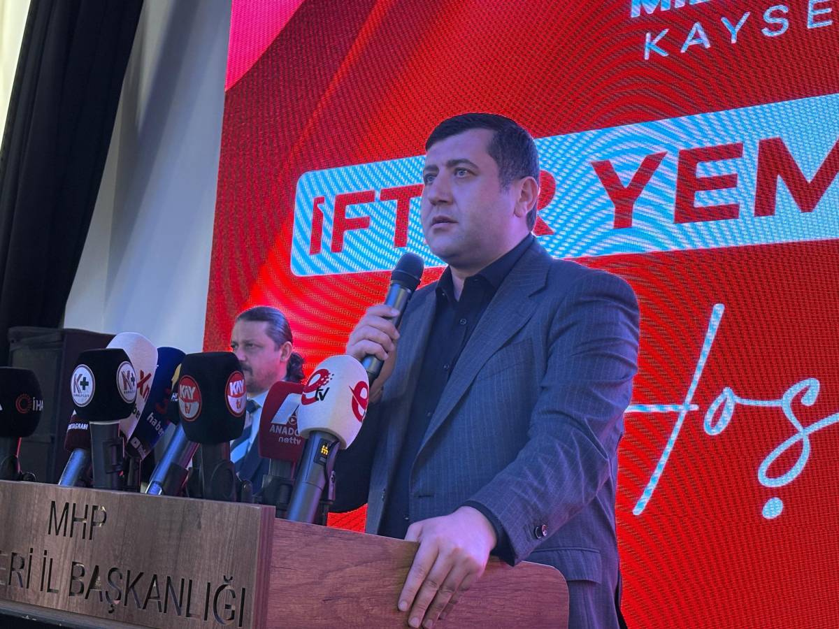 MHP Kayseri İl Başkanlığı tarafından düzenlenen iftar programında partililer aynı sofrada buluştu. Programa MHP Kayseri Milletvekili Baki Ersoy, Kayseri Büyükşehir Belediye Başkanı Memduh Büyükkılıç, MHP İl Başkanı Enes Ertuğrul Kalın, Ülkü Ocakları İl Başkanı Halit Yağmur, KAÇEP İl Başkanı Nurten Yelkara, MHP İl yöneticileri, ilçe başkanları ve yönetimleri, KAÇEP ilçe başkanları ve yönetimleri ile çok sayıda partili ve davetli katıldı.