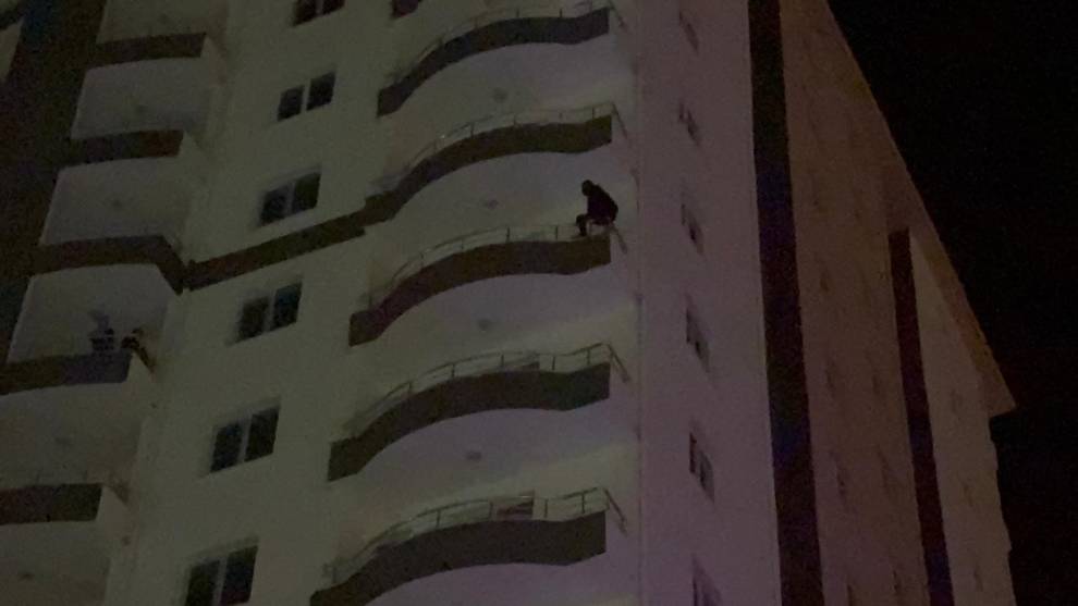 Mevlana Mahallesi Papatya Caddesi’nde meydana gelen olayda, G.B. isimli şahıs, bir inşaat için anlaştığı müteahhitten iddiaya göre parasını alamayınca 15 katlı inşaatın 8’inci katına çıktı. İhbar üzerine bölgeye polis, sağlık ve itfaiye ekipleri sevk edildi. Polis ekipleri çevrede güvenlik önlemi alarak, G.B.’yi ikna etmek için yanına çıkarken, itfaiye ekipleri de inşaatın yanına atlama yatağı kurdu. G.B. balkonun demirlerine oturarak, aşağı sarkarken yürekleri ağıza getirdi. Ekiplerin uzun uğraşları sonucu G.B. ikna edilerek aşağı indirildi. G.B. ifadesi alınmak üzere karakola götürüldü.