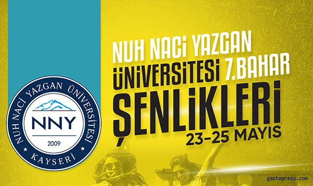 NNYÜ kampüsünde yapılacak 7. Bahar Şenliği, Pazartesi günü Çocuk Mehteran Takımı ve Büyükşehir Belediyesi Mehteran Takımının gösterisi ile başlayacak. Bilim, kültür, sanat ve spor etkinlikleri kapsamında düzenlenen ve üç gün sürecek NNYÜ 7. Bahar Şenliği’nde Büyükşehir Belediyesi Spor A.Ş. etkinlikleri başta olmak üzere, bilgi yarışmaları, satranç turnuvası, yamaç paraşütü, karaoke, çeşitli oyunlar, sportif faaliyetler, klasik araba sergisi, bisiklet turu, dart turnuvası, duvar boyama gibi birbirinden güzel ve eğlenceli pek çok etkinlik yer alacak. Yukatel Kayserispor Başkanı Berna Gözbaşı’nın öğrencilerle bir araya geleceği söyleşi programının yer aldığı etkinliklerde her akşam ünlü bir sanatçı NNYÜ’de konser verecek. Şenlik kapsamında ilk gün Manuş Baba, ikinci gün Rabia Karataş, üçüncü gün Melek Mosso sahne alacak.