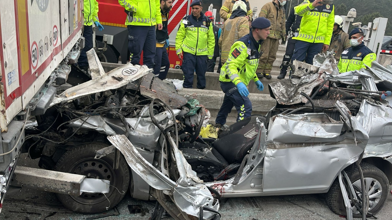 Pendik Kuzey Marmara Otoyolu Kurnaköy gişeleri mevkii'nde hızla gelen otomobil TIR'ın altına girdi. Kazada 4 kişi hayatını kaybetti.