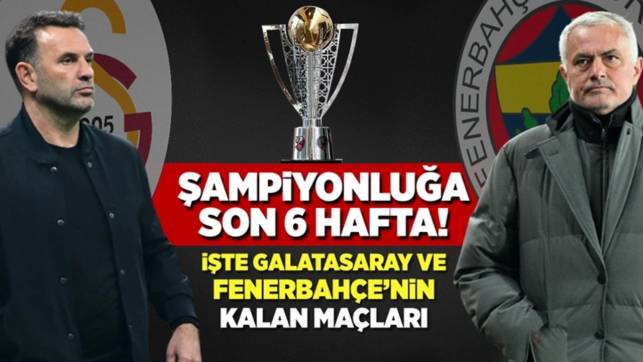 Süper Lig’in tamamlanmasına 6 hafta kala şampiyonluk yarışı devam ederken iki ezeli rakibi kalan haftalarda zorlu maçlar bekliyor.