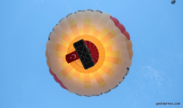 UNESCO Dünya Doğal ve Kültürel Miras Listesi'nde yer alan Kapadokya bölgesinde sıcak hava balonları, 15 Temmuz Demokrasi ve Milli Birlik Günü dolayısıyla Türk bayrağı ve pankartlarla gökyüzüne süzüldü.