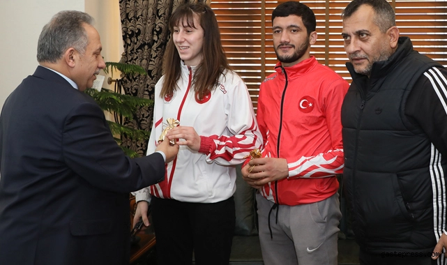 Ziyaret sonunda Başkan Yalçın sporculara ve teknik ekibe altın, kitap ve kalemden oluşan hediye takdiminde bulundu.