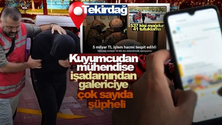 Tekirdağ Cumhuriyet Başsavcılığı talimatları ile İl Emniyet Müdürlüğü’ne bağlı İstihbarat ve Asayiş Şube Dolandırıcılık Büro Amirliği ekipleri tarafından aylar süren teknik ve fiziki takibin ardından düzenlenen paravan şirketler operasyonunda 46 şüpheli yakalandı, 41’i tutuklanırken aylar süren operasyonda yeni detaylar ortaya çıktı.