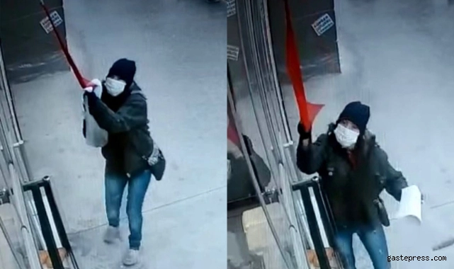 Edinilen bilgiye göre olay, Ankara Caddesi üzerinde bulunan bir iş yerinde meydana geldi. İş yerine asılı Türk bayrağını gören bir bereli ve maskeli bir kadın aşağıya doğru çekerek indirmeye çalıştı. Bayrağı indirmekte başarısız olan kadın olay yerinden uzaklaşırken o anlar güvenlik kamerasına anbean kaydedildi.