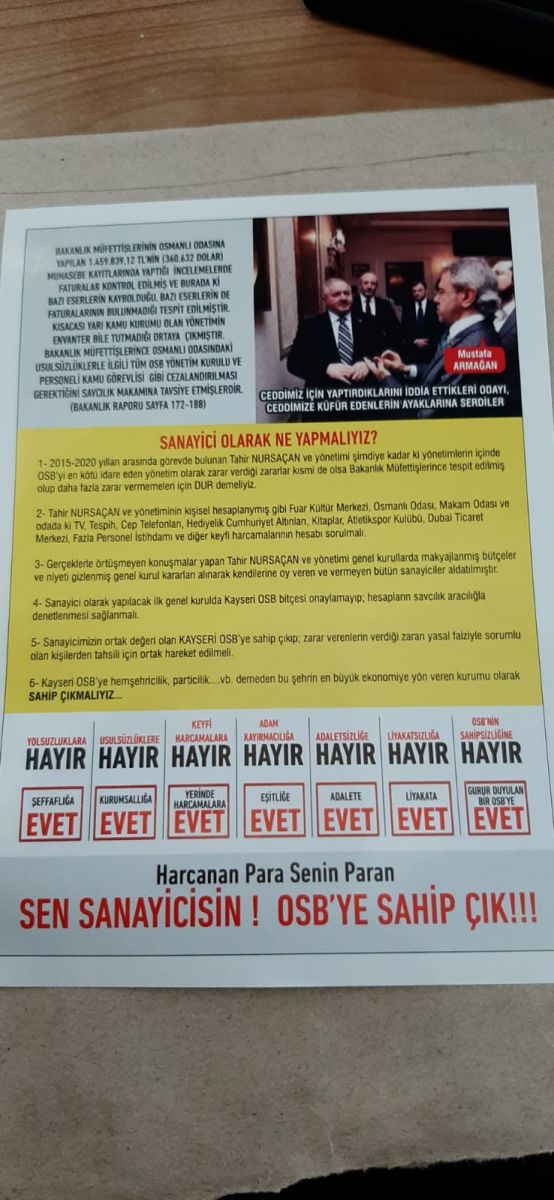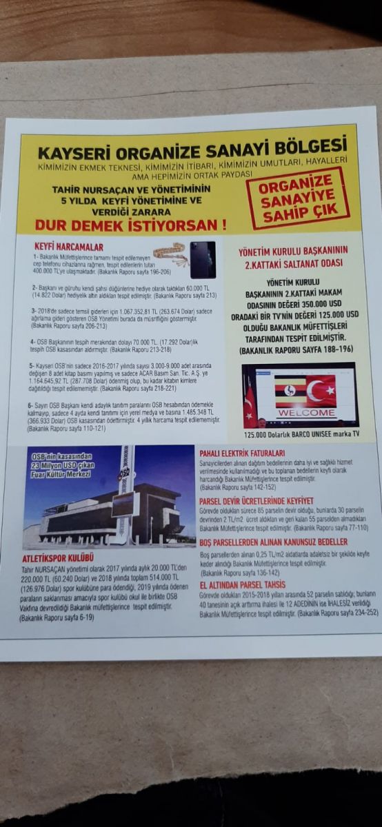 Bakın tekrar yazıyorum diyorum ki iş çığırından çıkıyor. OSB Kaynıyor, neden mi artık sanayici broşür hazırlayıp dağıtmaya ve seslerini bu şekilde duyurmaya başladı.